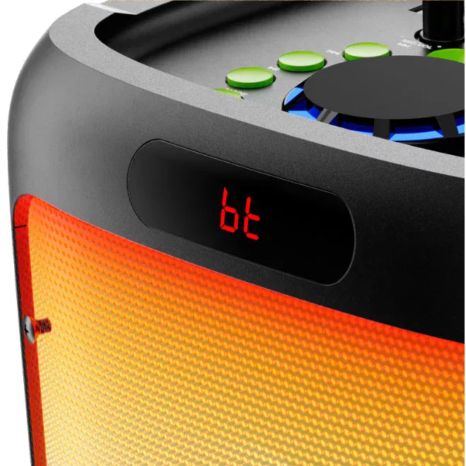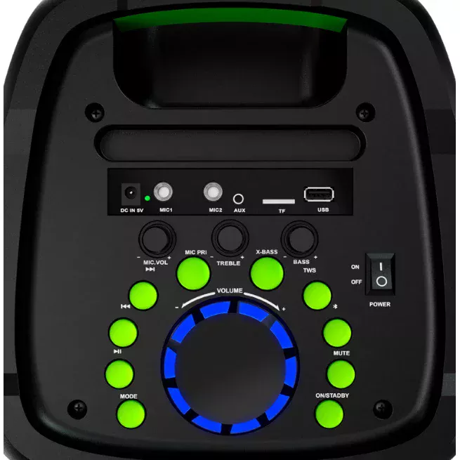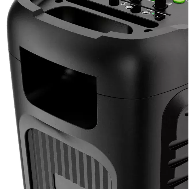 Klip Xtreme KLS-652. Diámetro del tweeter (imperial): 3.81 cm (1.5"), Diámetro del tweeter: 3.8 cm, Diámetro del conductor del subwoofer: 20.3 cm. Potencia estimada RMS: 100 W, Rango de frecuencia: 80 - 15000 Hz, Impedancia: 4 Ohmio. Tecnología de conectividad: Inalámbrico, Alcance de frecuencia: 2.4 - 2.48 GHz, alcance Bluetooth: 10 m. Tipo de producto: Altavoz de fiesta, Color del producto: Negro, Tipo de visualizador: LED. Uso recomendado: Universal, Tarjetas de memoria compatibles: MicroSD (TransFlash), Tamaño máximo de tarjeta de memoria: 32 GB