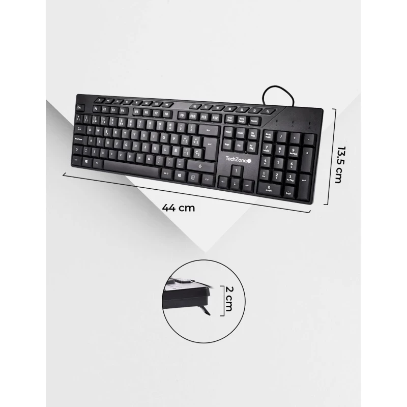 TechZone TZACCBA01 teclado Ratón incluido Oficina USB QWERTY Negro