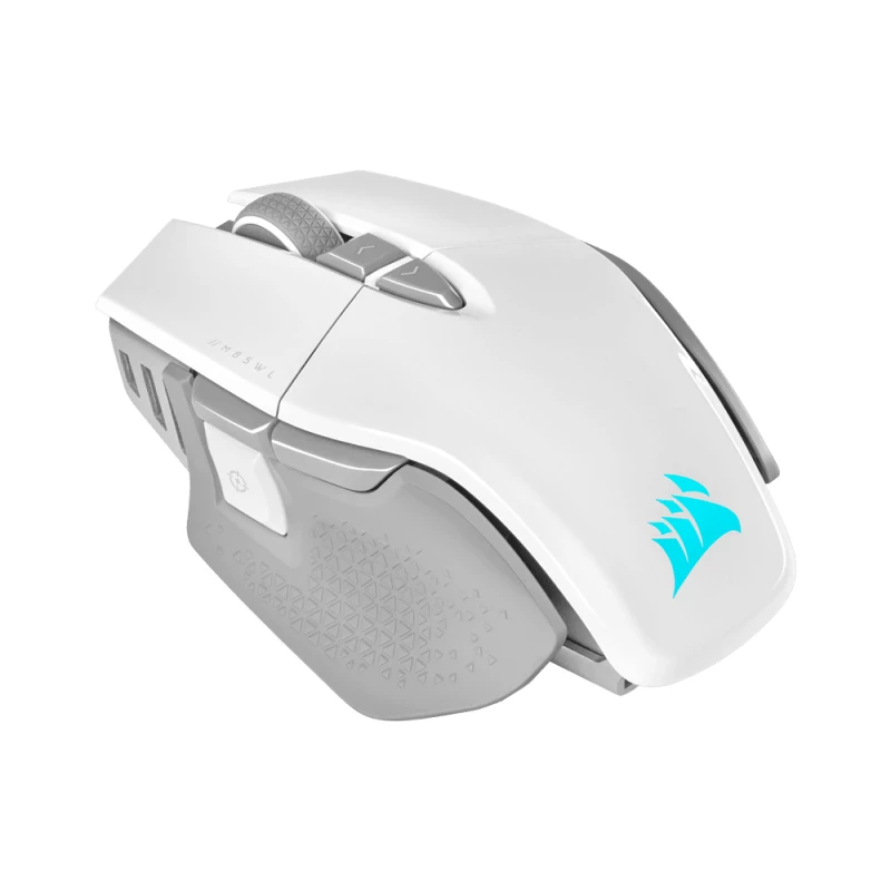 Corsair M65 RGB ULTRA WIRELESS. Factor de forma: Diestro. Tecnología de detección de movimientos: Óptico, Interfaz del dispositivo: Bluetooth, Resolución de movimiento: 26000 DPI, Tipo de botones: Botones presionados, Cantidad de botones: 8, Tipo de desplazamiento: Rueda, Aceleración (máx.): 50 G. Iluminación de color: Multi. Fuente de energía: Baterías. Color del producto: Blanco