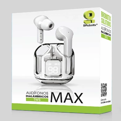 BRobotix 6005859. Tipo de producto: Auriculares. Tecnología de conectividad: True Wireless Stereo (TWS), Bluetooth. Uso recomendado: Llamadas/Música/Deportes/Diario. Alcance inalámbrico: 10 m. Peso: 104.6 g. Color del producto: Transparente, Blanco