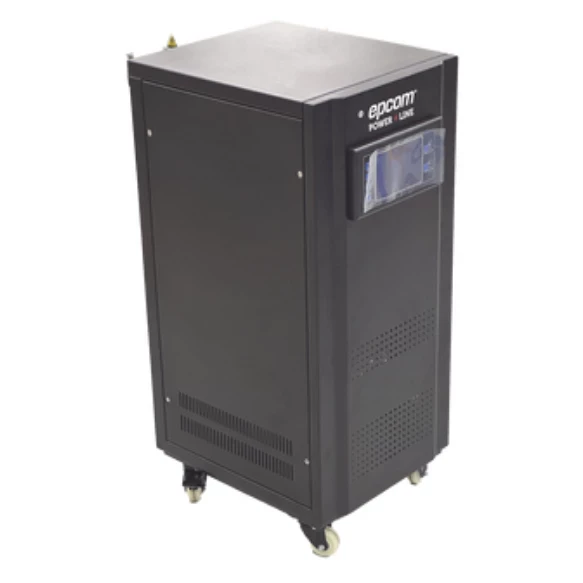 Epcom EPL10K3FVR. Voltaje nominal de entrada: 176 - 264 V, Frecuencia de entrada: 50/60 Hz. Voltaje de salida: 215.6 – 224.4, Frecuencia de salida: 50/60 Hz, Capacidad de potencia de salida (VA): 10 kVA. Eficiencia: 98%, EMI/RFI, filtro de ruido: 65 Db. Peso: 70 kg, Ancho: 340 mm, Profundidad: 400 mm. Peso del paquete: 80 kg