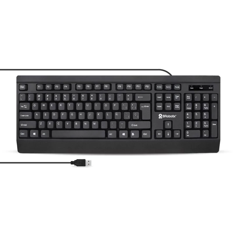 BRobotix 6007181. Formato del teclado: Tamaño completo (100%), Tecnología de conectividad: Alámbrico, Diseño de teclado: QWERTY, Uso recomendado: Universal. Color del producto: Negro