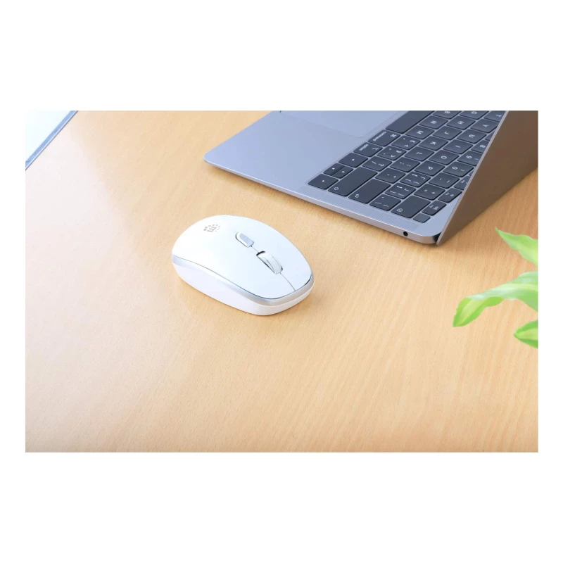 Manhattan Nanorreceptor USB-A, seis botones con rueda de desplazamiento, 800/1200/1600 ppp, contorno agradable para la muñeca, blanco. Factor de forma: Diestro. Tecnología de detección de movimientos: Óptico, Interfaz del dispositivo: RF inalámbrico, Resolución de movimiento: 1600 DPI, Tipo de botones: Botones presionados, Cantidad de botones: 6, Tipo de desplazamiento: Rueda. Fuente de energía: Baterías. Color del producto: Blanco