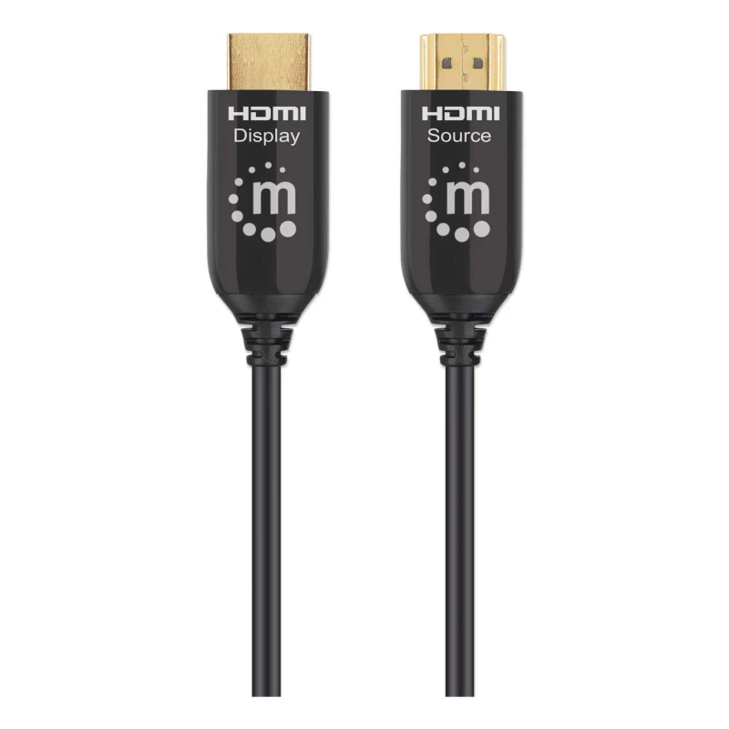 Manhattan AOC (Cable Óptico Activo) HDMI macho a macho, 15 m (50 pies), con clasificación CMP/CPR, compatible con 4K@120Hz, 48G, HDR dinámico, HEC, eARC, contactos chapados en oro, negro Número de modelo: 356152. Longitud de cable: 10 m, Conector 1: HDMI Tipo A (Estándar), Género del conector 1: Macho, Conector 2: HDMI Tipo A (Estándar), Género del conector 2: Macho, Contactos del conector chapado: Oro, Versión HDMI: 2.1, Velocidad de transferencia de datos: 48 Gbit/s, Canal de retorno de audio (ARC), Color del producto: Negro