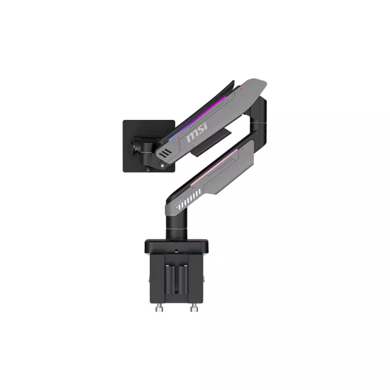 MSI MPG MT201R. Montaje: Abrazadera/Ojal, Capacidad máxima de peso: 20 kg, Tamaño mínimo de pantalla: 43.2 cm (17"), Tamaño máximo de pantalla: 124.5 cm (49"), Montaje VESA mínimo: 75 x 75 mm, Montaje VESA máximo: 100 x 100 mm. Ángulo de inclinación: -20 - 50°. Color del producto: Negro
