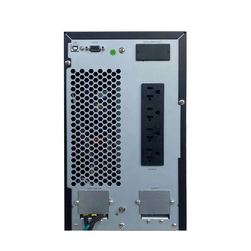 Smartbitt SBOL3KT-1. Topología UPS: Doble conversión (en línea), Capacidad de potencia de salida (VA): 3 kVA, Potencia de salida: 2700 W. Cantidad de salidas AC: 4 salidas AC, Tipo de puerto USB: USB Tipo B, Tipo de serie de interfaz: RS-232. Capacidad de la batería: 9 Ah, Voltaje de la pila: 12 V, Tiempo de recarga de la batería: 4 h. Factor de forma: Tower, Color del producto: Negro, Tipo de visualizador: LCD. Ancho: 190 mm, Profundidad: 421 mm, Altura: 318 mm
