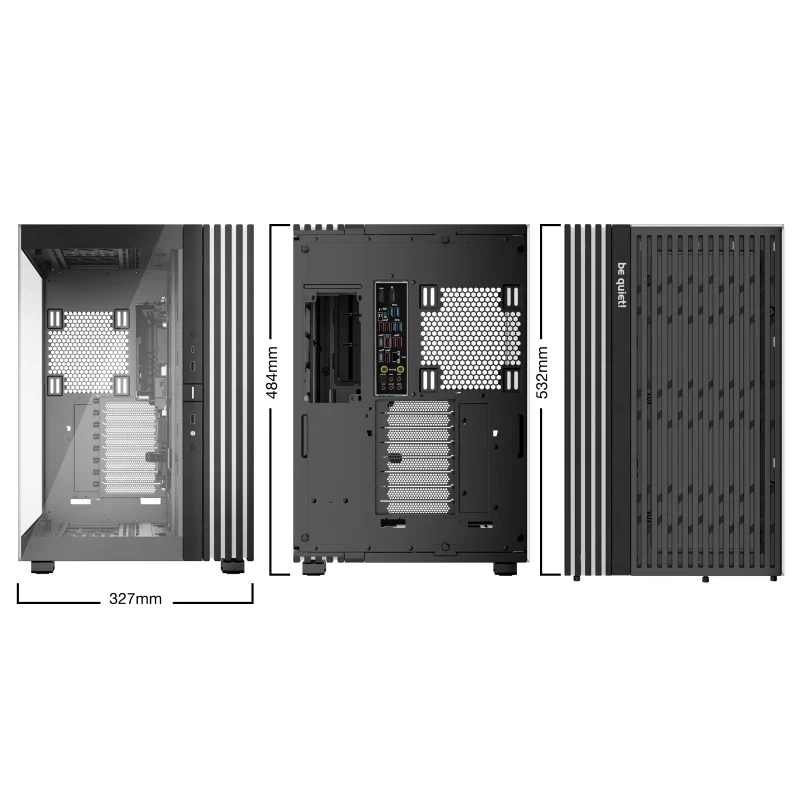 be quiet! LIGHT BASE 900 DX Black. Factor de forma: Full Tower, Tipo: PC, Color del producto: Negro. Factores de forma de la fuente de alimentación compatibles: ATX, PS2. Diámetro de ventiladores secundarios soportados: 120,140 mm, Diámetro de ventiladores traseros soportados: 120,140 mm, Diámetros de ventiladores superiores soportados: 120,140 mm. Tamaños de disco duro soportados: 2.5,3.5". Ancho: 327 mm, Profundidad: 532 mm, Altura: 484 mm