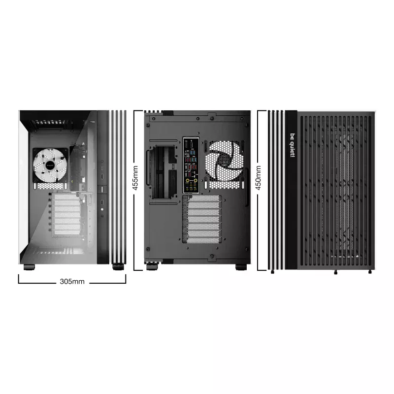 be quiet! LIGHT BASE 600 LX Black. Factor de forma: Midi Tower, Tipo: PC, Color del producto: Negro. Factores de forma de la fuente de alimentación compatibles: ATX, PS2. Ventiladores laterales instalados: 3x 120 mm, Diámetro de ventiladores secundarios soportados: 120 mm, Ventiladores traseros instalados: 1x 120 mm. Tamaños de disco duro soportados: 2.5,3.5". Ancho: 305 mm, Profundidad: 450 mm, Altura: 455 mm