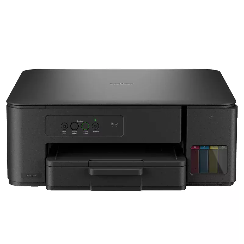 Brother DCPT230. Tecnología de impresión: Inyección de tinta, Impresión: Impresión a color, Resolución máxima: 6000 x 1200 DPI, Velocidad de impresión (color, calidad normal, A4/US Carta): 11 ppm. Copiando: Copia a color, Resolución máxima de copia: 1200 x 600 DPI. Escaneando: Escaneo a color, Resolución óptica de escáner: 2400 x 1200 DPI. Tamaño máximo de papel ISO A-series: A4. Impresión directa. Color del producto: Negro