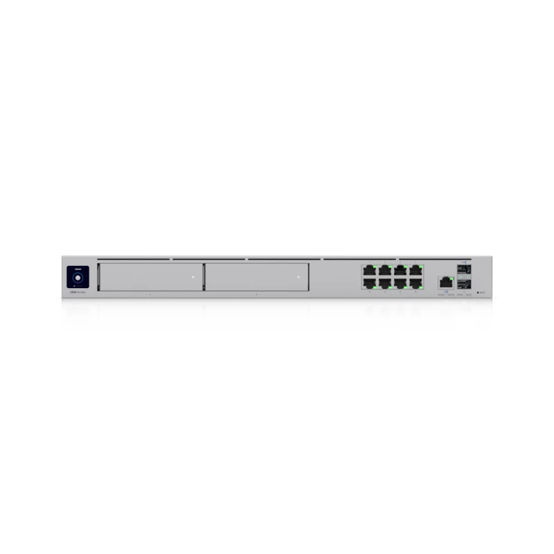 Ubiquiti UniFi Dream Machine Pro Max. Tipo de interruptor: Gestionado. Puertos tipo básico de conmutación RJ-45 Ethernet: 2.5G Ethernet (100/1000/2500), Cantidad de puertos básicos de conmutación RJ-45 Ethernet: 9. Voltaje de entrada DC: 12 V. Conector eléctrico: Toma de entrada de CC. Montaje en rack, Factor de forma: 1U