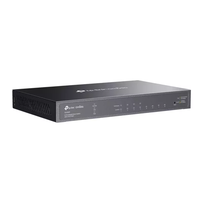 TP-Link Omada TL-SG2008P. Tipo de interruptor: Gestionado, Capa del interruptor: L2/L2+. Puertos tipo básico de conmutación RJ-45 Ethernet: Gigabit Ethernet (10/100/1000), Cantidad de puertos básicos de conmutación RJ-45 Ethernet: 8. Tabla de direcciones MAC: 8000 entradas, Capacidad de conmutación: 16 Gbit/s. Estándares de red: IEEE 802.1D, IEEE 802.1Q, IEEE 802.1p, IEEE 802.1s, IEEE 802.1w, IEEE 802.1x, IEEE 802.3ab, IEEE.... Energía sobre Ethernet (PoE). Montaje en rack