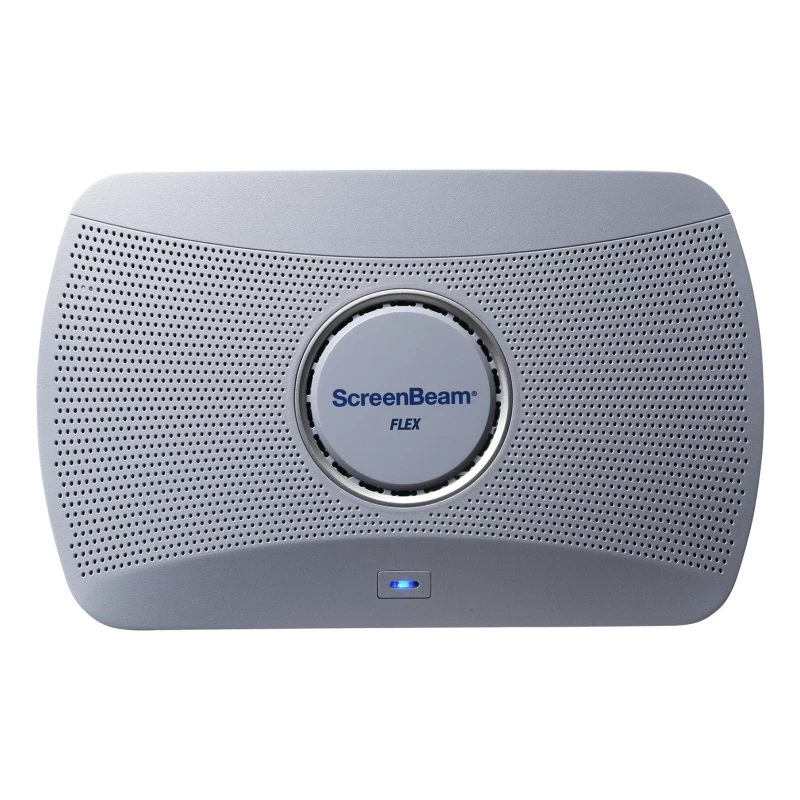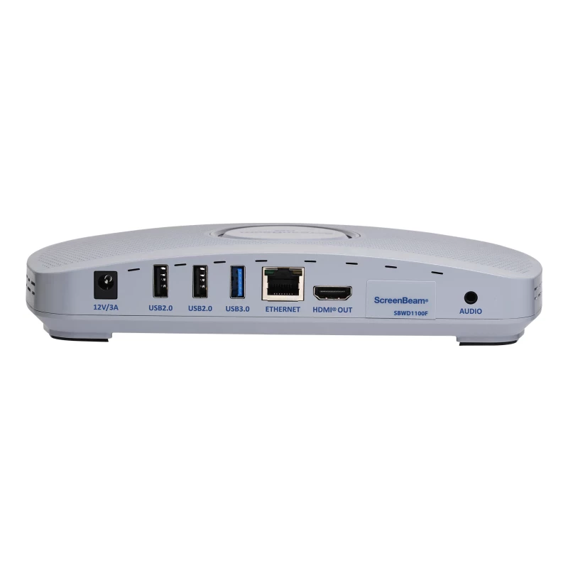 ScreenBeam Flex. Factor de forma: Escritorio, Color del producto: Blanco, Certificación: FCC, RED, RoHS, UL. Estándares de Wi-Fi: Wi-Fi 5 (802.11ac), Máximo estándar Wi-Fi: Wi-Fi 5 (802.11ac), Ethernet LAN, velocidad de transferencia de datos: 10,100,1000 Mbit/s. Interfaz: HDMI + USB Type-A. Tipo de alimentación: CC, Voltaje de entrada: 12 DC, Corriente de entrada: 3 A. Sistemas operativos Windows soportados: Windows 10, Windows 11, Sistemas operativos Mac soportados: Mac OS X 11.0 Big Sur, Mac OS X 12.0 Monterey, Mac OS X 13.0 Ventura, Otros sistemas operativos soportados: ChromeOS