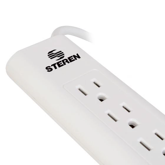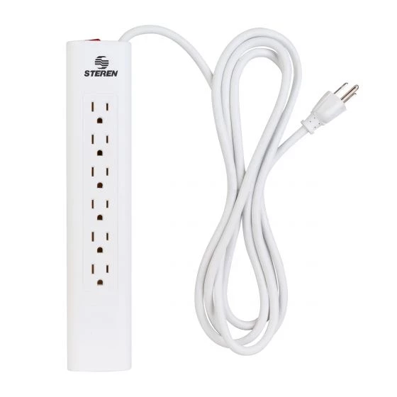 Steren 905-215. Longitud de cable: 2.5 m, Colocación compatible: Interior, Color del producto: Blanco. Cantidad de salidas AC: 6 salidas AC. Voltaje de entrada AC: 125 V, Frecuencia de entrada AC: 60 Hz, Máxima corriente: 15 A. Número de productos incluidos: 1 pieza(s)