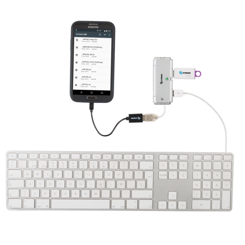 Steren USB-455. Longitud de cable: 0.1 m. Conector 1: USB A, Conector 2: Micro-USB B, Color del producto: Negro