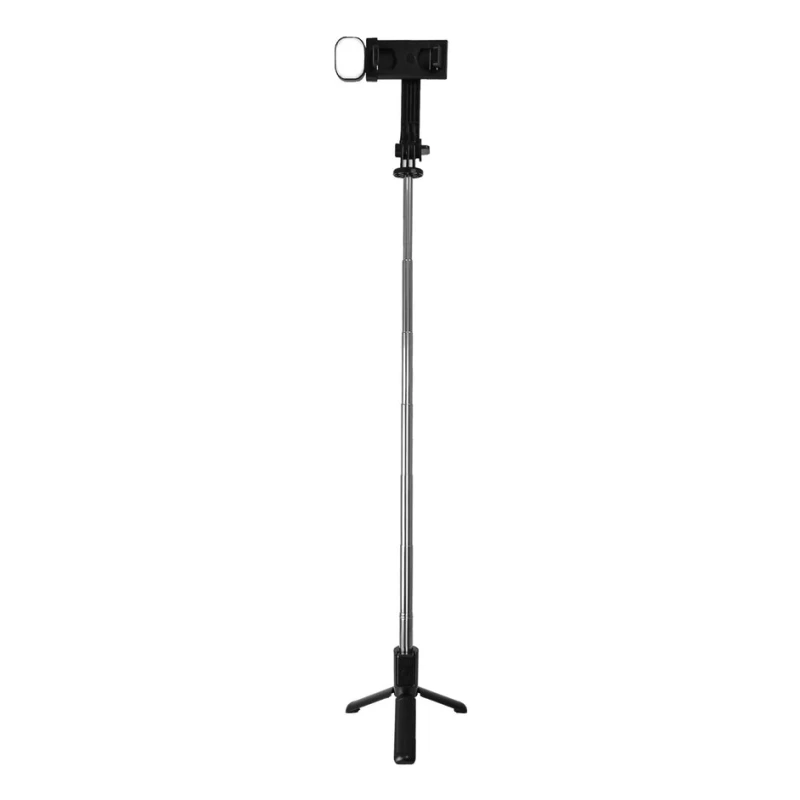 Diseño 3 en 1: Bastón selfie, trípié y luz LED en un solo dispositivo.