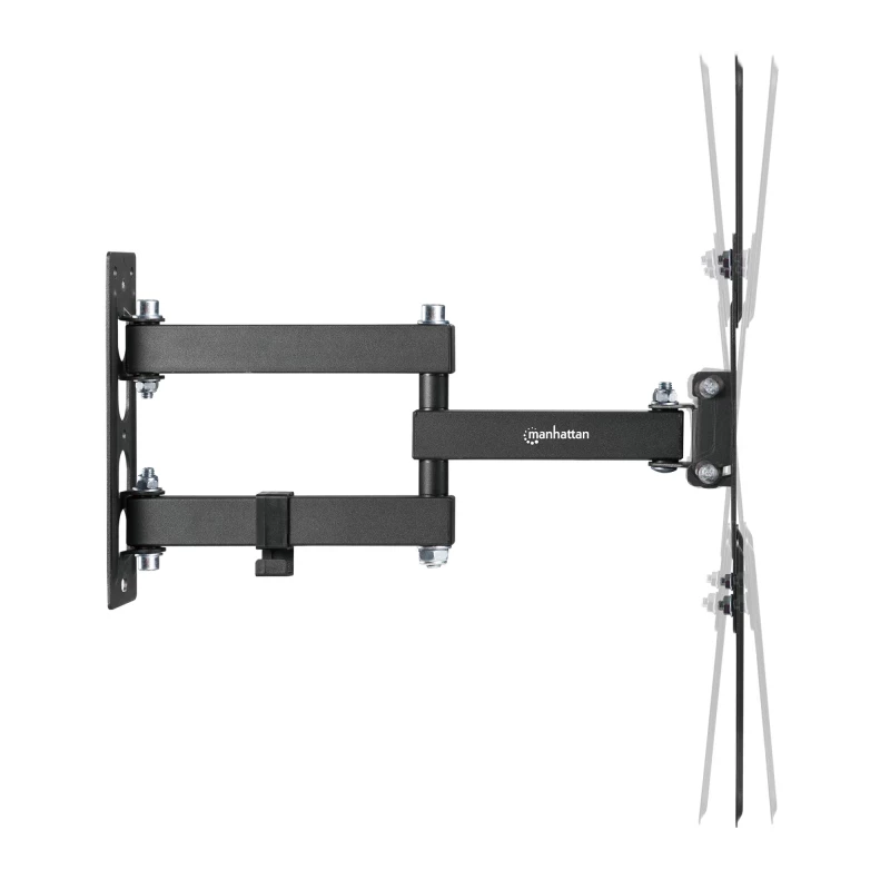 Manhattan Soporte con brazo articulado para pantalla de 23" a 55". Soporta una pantalla de 23" a 55" de hasta 30 kg (66 lbs.), +/-90° de giro, +3 a -10° de inclinación, brazo flexible que ahorra espacio, ideal para instalaciones en esquinas, negro. Capacidad máxima de peso: 30 kg, Tamaño mínimo de pantalla: 58.4 cm (23"), Tamaño máximo de pantalla: 139.7 cm (55"), Montaje VESA mínimo: 100 x 100 mm, Montaje VESA máximo: 400 x 400 mm. Ángulo de inclinación: -10 - 3°, Ángulo de giro (alcance): -90 - 90°, Distancia a la pared (min): 6 cm, Distancia a la pared (máx.): 38.2 cm. Color del producto: Negro