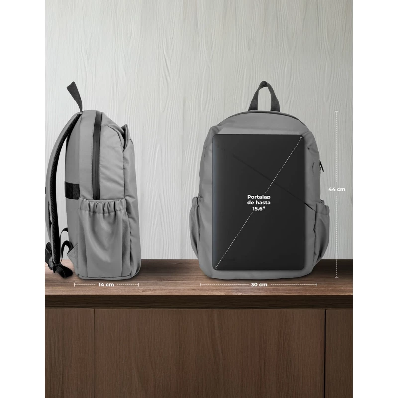 Backpack diseñada con materiales resistentes a salpicaduras para brindar durabilidad y protección. Compatible con laptops de hasta 16”, cuenta con cierres duraderos y compartimientos internos acolchonados que garantizan la seguridad de tu equipo. Además, ofrece dos prácticos compartimientos laterales para botellas y un compartimiento frontal en diagonal para acceso rápido a tus pertenencias. Su diseño funcional y elegante la convierte en la opción perfecta para el trabajo, la universidad o tus viajes diarios.