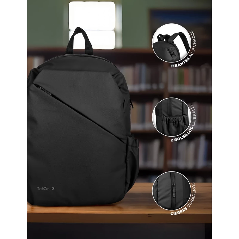 TechZone TZLBP29-N. Color principal del producto: Negro, Coloración: Monocromático, Género recomendado: Unisex. Ancho: 300 mm, Profundidad: 140 mm, Altura: 440 mm. Materiales: Poliéster