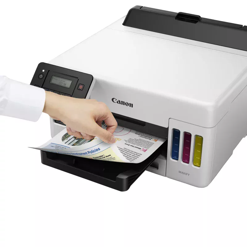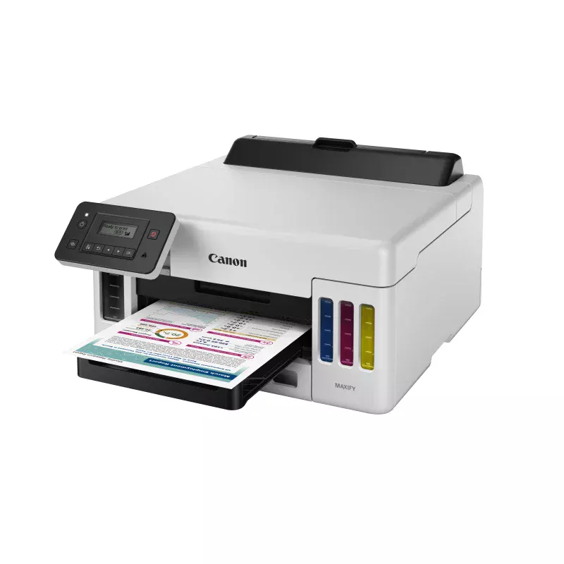 Canon MAXIFY GX5050. Color, Número de cartuchos de impresión: 4. Resolución máxima: 600 x 1200 DPI. Tamaño máximo de papel ISO A-series: A4. Velocidad de impresión (negro, calidad normal, A4/US Carta): 24 ppm. Impresión a doble cara. Pantalla: LCD. Wifi. Color del producto: Negro, Blanco