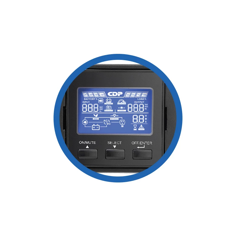 UPS en línea de doble conversión Chicago Digital Power Enterprise 3000VA en una configuración R / T para instalación en rack de 19 pulgadas o montaje en piso. Incorpora potentes baterías libre de mantenimiento y un amplio rango de voltaje de entrada de 55Vca - 150Vca ±3% y voltaje de salida con seleccionable de 100-110-115-120-125Vac salida precisa. Diagnósticos automáticos y pantallas LCD avanzadas que brindan información operativa y comunicación para monitoreo y control remoto.