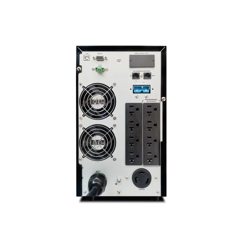 Chicago Digital Power Enterprise 3000VA UPS de torre en línea de doble conversión para montaje en piso. Baterías de potencia completa incorporadas que se pueden extender hasta 3X y un amplio rango de voltaje de entrada de 60Vca a 150Vca y voltaje de salida seleccionable de 100-110-115-120-125Vca con salida precisa. con diagnósticos automáticos y pantallas LCD avanzadas que brindan información operativa y comunicación para monitoreo y control remoto.