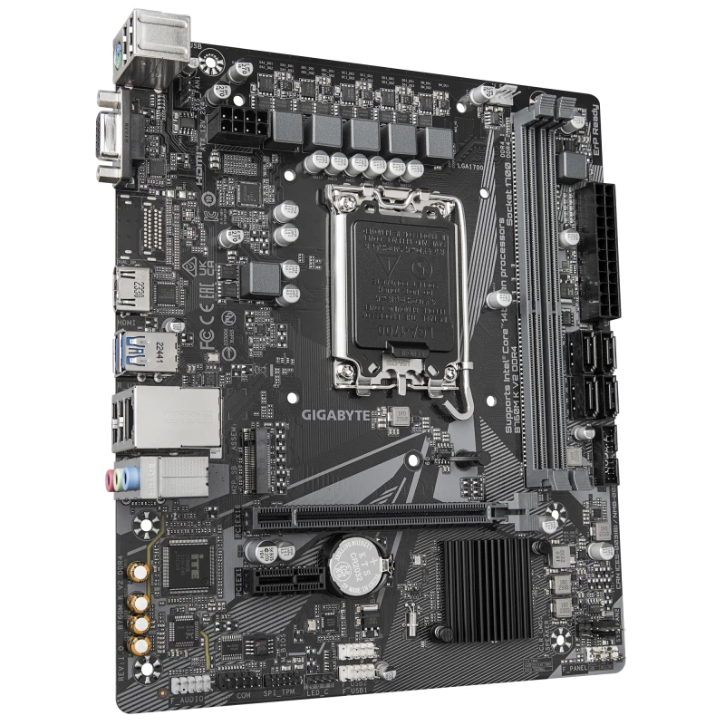 GIGABYTE B760M K V2 DDR4. Fabricante de procesador: Intel, Socket de procesador: LGA 1700, Procesador compatible: Intel® Celeron®, Intel® Pentium® Gold. tipos de memoria compatibles: DDR4-SDRAM, Memoria interna máxima: 64 GB, Tipo de ranuras de memoria: DIMM. Interfaces de disco de almacenamiento soportados: M.2, SATA III, Niveles RAID: 0, 1, 5, 10. Tipo de interfaz ethernet: Gigabit Ethernet. Componente para: PC, Factor de forma de la tarjeta madre: Micro ATX, Familia del chipset: Intel