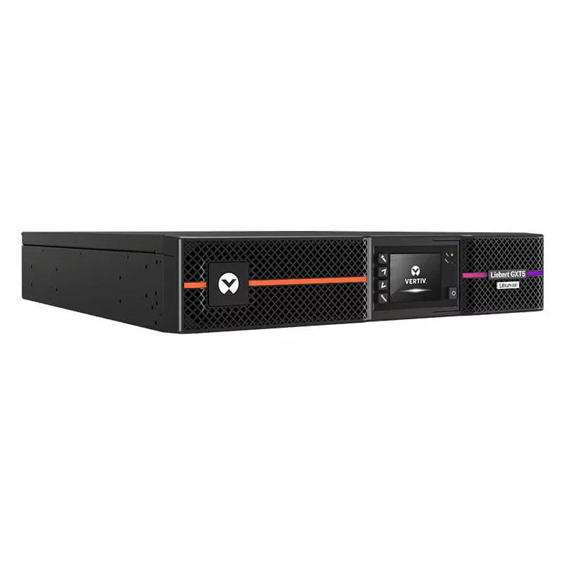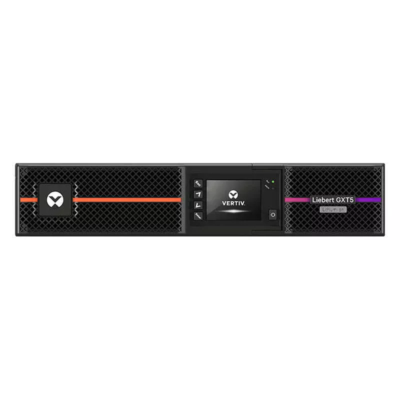 Vertiv Liebert GXT5LI-2000LVRT2UXL. Topología UPS: Doble conversión (en línea), Capacidad de potencia de salida (VA): 2 kVA, Potencia de salida: 1800 W. Tipo de salida AC: NEMA 5–15, NEMA 5–20R, NEMA L5-20R, Conector: NEMA 5-20P, Cantidad de salidas AC: 7 salidas AC. Tecnología de batería: Ión de litio, Tiempo típico de respaldo a carga completa: 10.5 min, Tiempo típico de respaldo a media carga: 22.5 min. Factor de forma: Montaje en rack o Montaje en bastidor, Color del producto: Negro, Capacidad del rack: 2U. Certificados de cumplimiento: REACH, RoHS, WEEE
