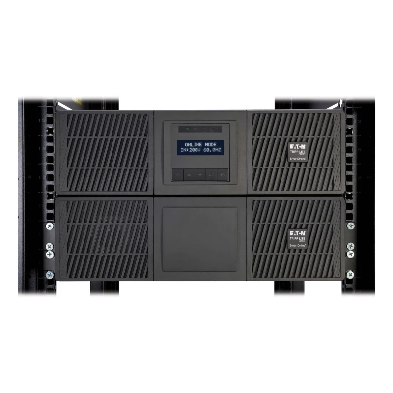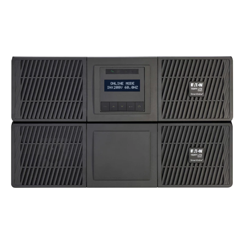 Tripp Lite UPS SmartOnLine de 5000 VA 4500 W 120/208 V en línea de doble conversión con transformador reductor y derivación de mantenimiento - Salidas 5-20R/L6-20R/L6-30R, Entrada L6-30P, Tarjeta de red incluida, Funcionamiento ampliado, 6U. Topología UPS: Doble conversión (en línea), Capacidad de potencia de salida (VA): 5 kVA, Potencia de salida: 4500 W. Tipo de salida AC: Hardwire, NEMA 5–20R, NEMA L6-20R, NEMA L6-30R, Conector: Hardwire, Cantidad de salidas AC: 21 salidas AC. Tecnología de batería: Sealed Lead Acid (VRLA), Voltaje de la pila: 180 V, Tiempo típico de respaldo a carga completa: 3 min. Factor de forma: Montaje en rack/Torre o Montaje en bastidor/Torre, Color del producto: Negro, Material de la cubierta: Metal. Certificados de cumplimiento: CE, Comisión Federal de Comunicaciones (FCC), RoHS