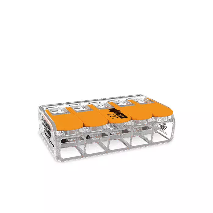 Wago 221-615. Voltaje: 450 V, Color del producto: Naranja, Transparente. Cantidad por paquete: 1 pieza(s)
