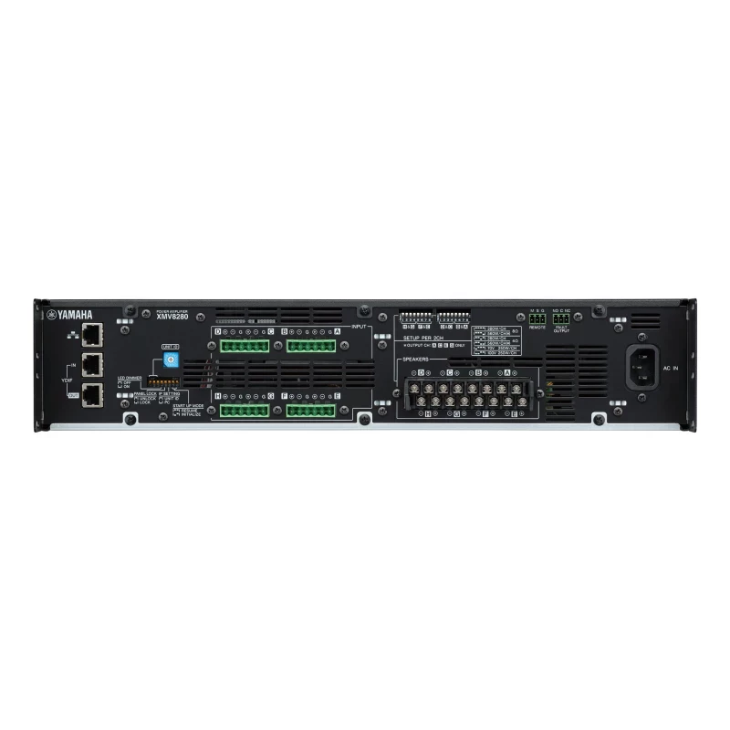 Yamaha XMV8280. Canales de salida de audio: 8.0 canales, THD, distorsión armónica total: 1%, Relación señal/ruido (SNR): 100 Db. Tipo de conectividad de bocina: Euroblock. Tipo de alimentación: Corriente alterna, Voltaje de entrada AC: 100, 120, 230-240 V, Frecuencia de entrada AC: 50/60 Hz. Ancho: 480 mm, Profundidad: 422 mm, Altura: 88 mm