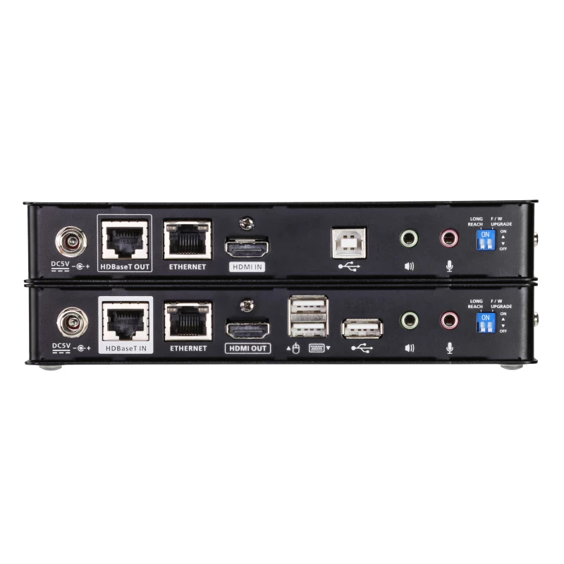 ATEN CE820. Tipo: Transmisor y receptor, Tecnología de conectividad: Alámbrico, Distancia de transferencia máxima: 150 m. Tipo de puerto de transmisor de vídeo: HDMI, Tipo de puerto de transmisor local de vídeo: HDMI, Transmisor local teclado/ratón tipo de puerto: USB. Tipo de puerto de receptor local de vídeo: HDMI, Tipo de puerto receptor de teclado local/ratón: USB. Voltaje de salida de adaptador AC: 5 V, Consumo de energía (transmisor) (max): 2.87 W, Consumo de energía (receptor) (max): 5.37 W. Acho de transmisor: 18.2 cm, Largo del transmisor: 12.2 cm, Alto del tansmisor: 2.87 cm