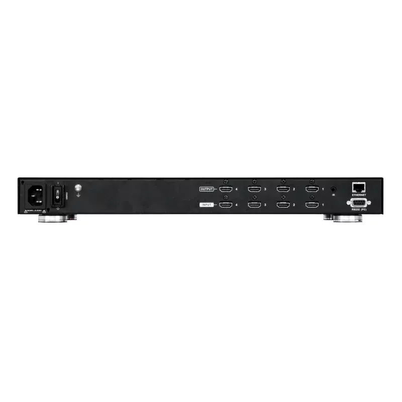 ATEN VM5404H. Tipo de puerto de vídeo: HDMI, Entrada de vídeo: 4 x HDMI Type A Female (Black), Salida de vídeo: 4 x HDMI Type A Female (Black). Materiales: Metal, Color del producto: Negro, Máxima velocidad de actualización: 60 Hz. Voltaje de entrada de adaptador AC: 100 - 240 V, Frecuencia de adaptador AC: 50/60 Hz, Corriente de entrada del adaptador de CA: 1 A. Ancho: 432.4 mm, Profundidad: 262.3 mm, Altura: 44 mm