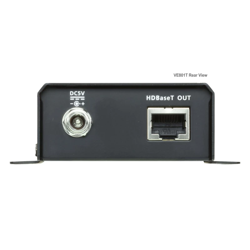 ATEN VE801T. Tipo: Transmisor AV, Máxima resolución: 3840 x 2160 Pixeles, Tipos de cable soportados: Cat5e, Cat6, Cat6a. Consumo energético: 1.85 W. Dimensiones (Ancho x Profundidad x Altura): 87 x 103 x 30 mm, Peso: 240 g