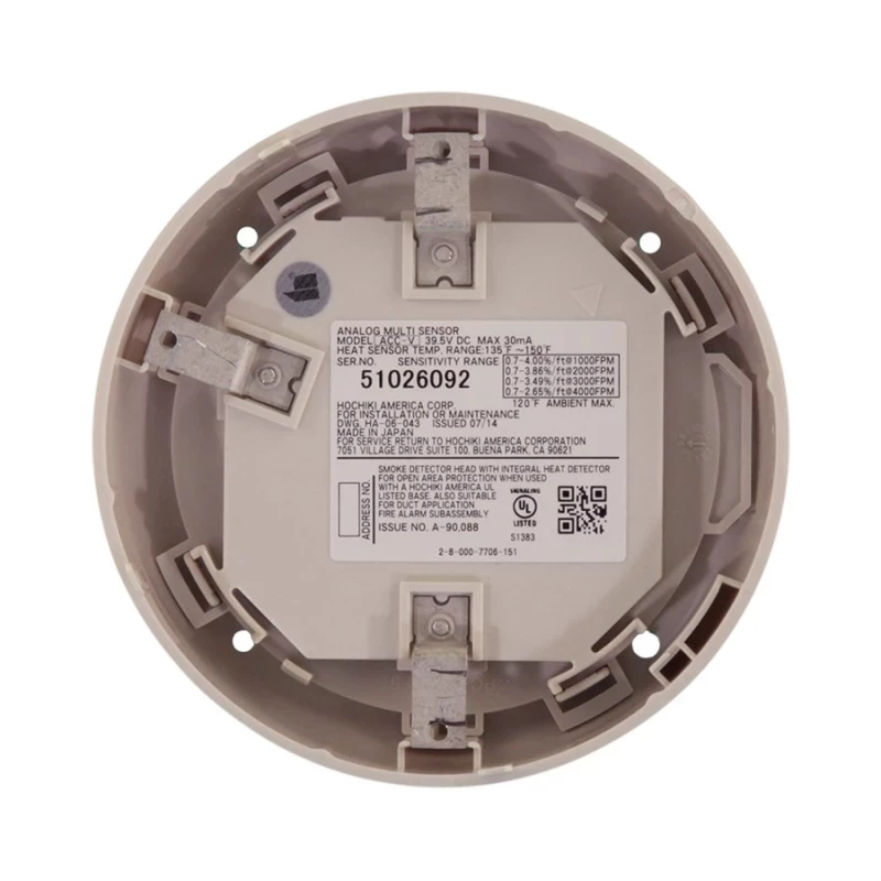 Hochiki ACC-V. Tipo de detector: Detector de reflejo fotoeléctrico, Tecnología de conectividad: Alámbrico, Color del producto: Blanco. Voltaje de entrada: 24 - 41 V. Diámetro: 10 cm, Altura: 45.7 mm. Cantidad por paquete: 1 pieza(s)