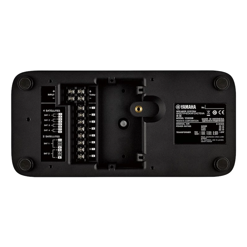 Yamaha VXS3SB. Potencia RMS de subwoofer: 20 W, Rango de frecuencias de subwoofer: 65 - 180 Hz, Subwoofer de potencia máxima: 80 W. Color del producto: Negro, Materiales: Acrilonitrilo butadieno estireno (ABS). Ancho de subwoofer: 33.2 cm, Largo del bubwoofer: 11.8 cm, Alto del subwoofer: 16.2 cm. Certificación: NFPA70, CE, RoHS