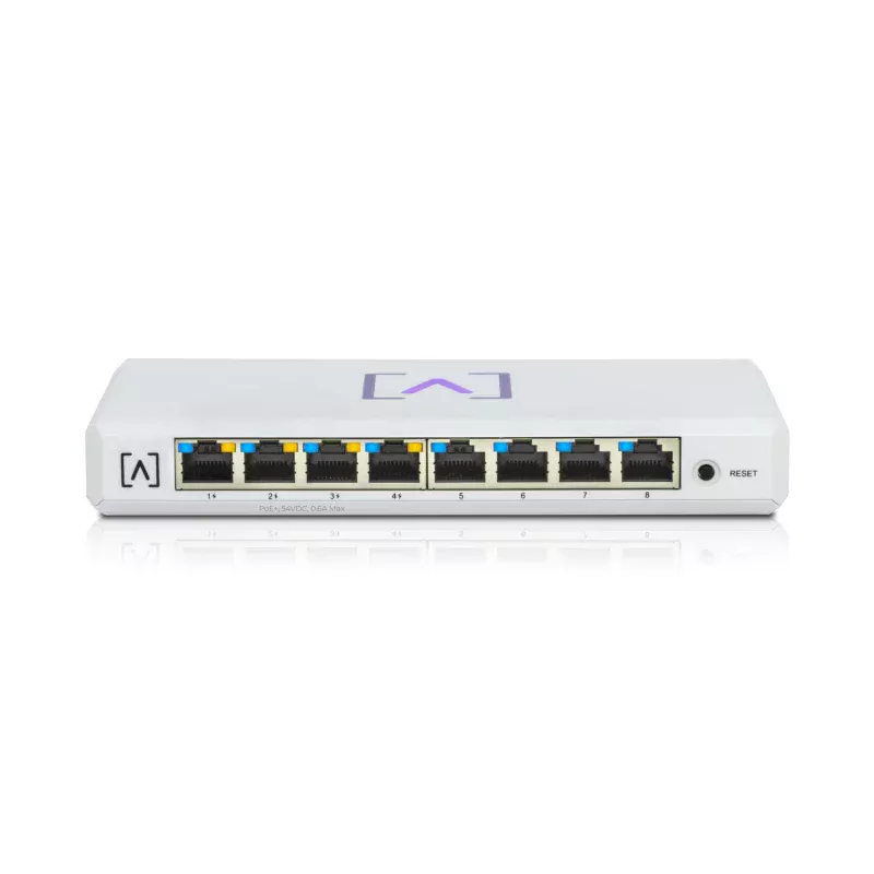 Alta Labs S8-POE. Tipo de interruptor: Gestionado. Puertos tipo básico de conmutación RJ-45 Ethernet: Gigabit Ethernet (10/100/1000), Cantidad de puertos básicos de conmutación RJ-45 Ethernet: 8. Tabla de direcciones MAC: 8000 entradas, Capacidad de conmutación: 16 Gbit/s. Estándares de red: IEEE 802.1x, IEEE 802.3af, IEEE 802.3at. Voltaje de entrada DC: 54 V. Conector eléctrico: Toma de entrada de CC. Energía sobre Ethernet (PoE). Montaje de pared