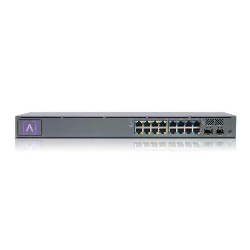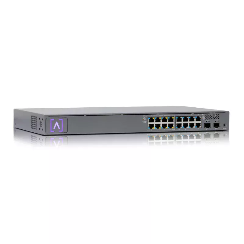 Alta Labs S16-POE. Tipo de interruptor: Gestionado. Puertos tipo básico de conmutación RJ-45 Ethernet: Gigabit Ethernet (10/100/1000), Cantidad de puertos básicos de conmutación RJ-45 Ethernet: 16, Número de módulos SFP instalados: 2. Tabla de direcciones MAC: 8000 entradas, Capacidad de conmutación: 36 Gbit/s. Estándares de red: IEEE 802.1x, IEEE 802.3af, IEEE 802.3at. Conector eléctrico: Conector de entrada de CA. Energía sobre Ethernet (PoE). Montaje de pared, Montaje en rack, Factor de forma: 1U