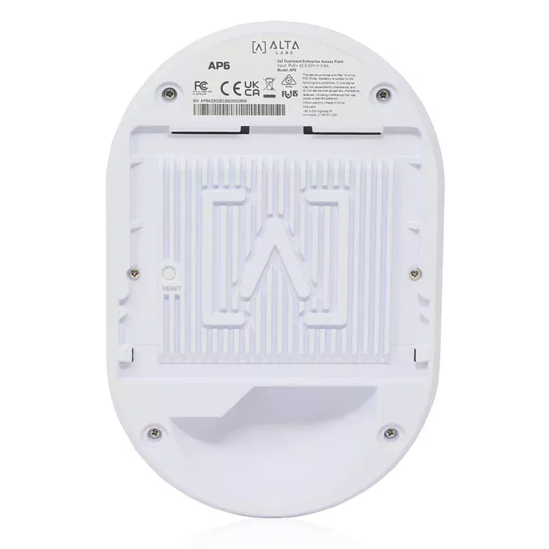 Alta Labs AP6 PRO. 2.4 GHz, 5 GHz, Rango máximo de transferencia de datos: 6300 Mbit/s. Algoritmos de seguridad: WPA-Enterprise, WPA2-PSK, WPA3-PSK. Ethernet LAN, velocidad de transferencia de datos: 100,1000 Mbit/s. Energía sobre Ethernet (PoE). Color del producto: Blanco. Consumo de energía (máx.): 25 W