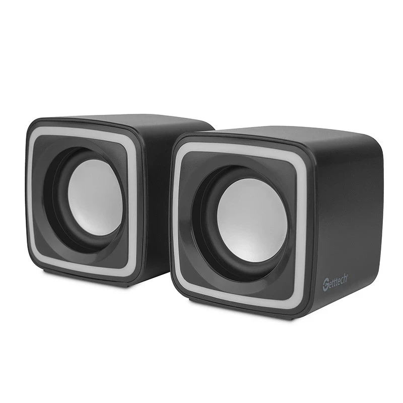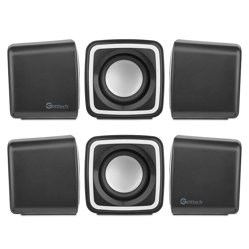 Getttech GUS-ESRWR-01. Diámetro del tweeter (imperial): 5.08 cm (2"). Potencia estimada RMS: 6 W, Rango de frecuencia: 45 - 16000 Hz. Tecnología de conectividad: Alámbrico. Tipo de producto: Altavoz portátil estéreo, Color del producto: Negro, Diseño de producto: Cubo. Uso recomendado: Universal