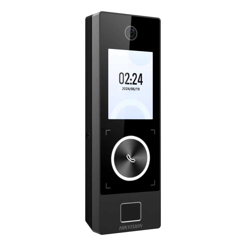 Hikvision Value Series DS-K1T323MBFWX-E1. Tecnología de visualización: TFT, Diagonal de la pantalla: 6.1 cm (2.4"), Resolución de la pantalla: 240 x 320 Pixeles. Resolución de la cámara: 2 MP. Color de la carcasa: Negro, Distancia de reconocimiento facial: 0.3 - 1.5 m, Duración del reconocimiento facial: 0.33 s. Voltaje de entrada: 12 V, Corriente de entrada: 1 A. Sistema operativo instalado: Linux