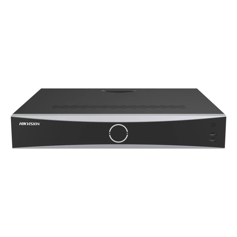 Hikvision DS-7732NXI-I4/16P/VPRO. Canales de entrada de vídeo: 32 canales, Máxima resolución: 3840 x 2160 Pixeles, Número de canales reproducidos simultáneamente: 32 canales. Capacidad máxima de almacenaje: 20 TB, Interfaz del HDD: SATA, SATA II, SATA III. Ethernet LAN, velocidad de transferencia de datos: 10,100,1000 Mbit/s, Estándares de red: IEEE 802.3af, IEEE 802.3at, Protocolos de red compatibles: TCP/IP, DHCP, IPv4, IPv6, DNS, DDNS, NTP, RTSP, SADP, SMTP, SNMP, NFS, iSCSI, ISUP, UPnP™, HTTP,.... Capacidad del rack: 1.5U, Color del producto: Negro, Certificación: CE, CB, REACH, WEEE, UKCA, RCM,IC,LOA,KC. Consumo de energía (máx.): 360 W, Consumo energético: 50 W, Voltaje de entrada AC: 100 - 240 V
