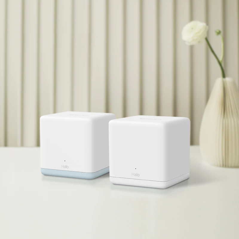 Mercusys HALO H32G (2-pack). Color del producto: Blanco, Tipo de antena: Interno, Tipo de producto: Sistema de malla. Banda Wi-Fi: Doble banda (2,4 GHz / 5 GHz), Máximo estándar Wi-Fi: Wi-Fi 5 (802.11ac), Tasa de transferencia de datos WLAN (máx.): 1200 Mbit/s. Seguridad con cortafuegos: SPI Firewall, Modos de funcionamiento: Router, Access Point. Ancho: 88 mm, Profundidad: 88 mm, Altura: 88 mm. Número de unidades incluidas: 3 pieza(s)