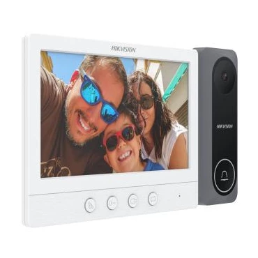 Hikvision DS-KIS212. Diagonal de la pantalla: 17.8 cm (7"), Tecnología de visualización: TFT, Resolución de la pantalla: 1024 x 600 Pixeles. Máxima resolución de video: 1280 x 720 Pixeles, Velocidad máxima de cuadro: 60 fps, Ángulo de visión, horizontal: 130°. Distancia de visión nocturna: 3 m, Tipo de LED: IR. Tipo de dirección de micrófono: Omnidireccional. Color del producto: Gris, Blanco, Material de la carcasa de la unidad de exterior: Plástico, Tipo de control: Botones