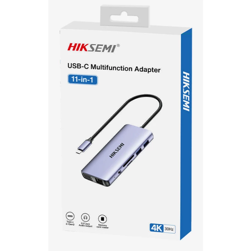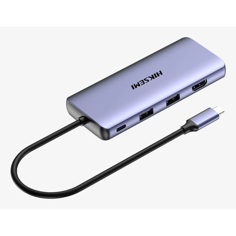 Hiksemi HS-HUB-DS11. Interfaz de host: USB Tipo C, Interfaces de concentradores: HDMI, RJ-45, USB 2.0, USB 3.0, VGA, Tarjetas de memoria compatibles: MicroSD (TransFlash), SD. Color del producto: Gris, Envío de energía de USB hasta: 100 W. Otros sistemas operativos soportados: Android. Ancho: 119.2 mm, Profundidad: 51.4 mm, Altura: 14 mm
