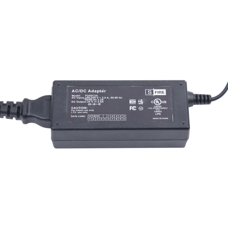 SFire P24DC3A. Utilizar con: Cámara de seguridad, Tipo de fuente de alimentación: Interior, Voltaje de entrada: 100 - 240 V. Color del producto: Negro. Certificados de cumplimiento: Comisión Federal de Comunicaciones (FCC), Norma Oficial Mexicana (NOM), UL, VI, cUL. Ancho: 113 mm, Profundidad: 35 mm, Altura: 49 mm. Cantidad por paquete: 1 pieza(s)