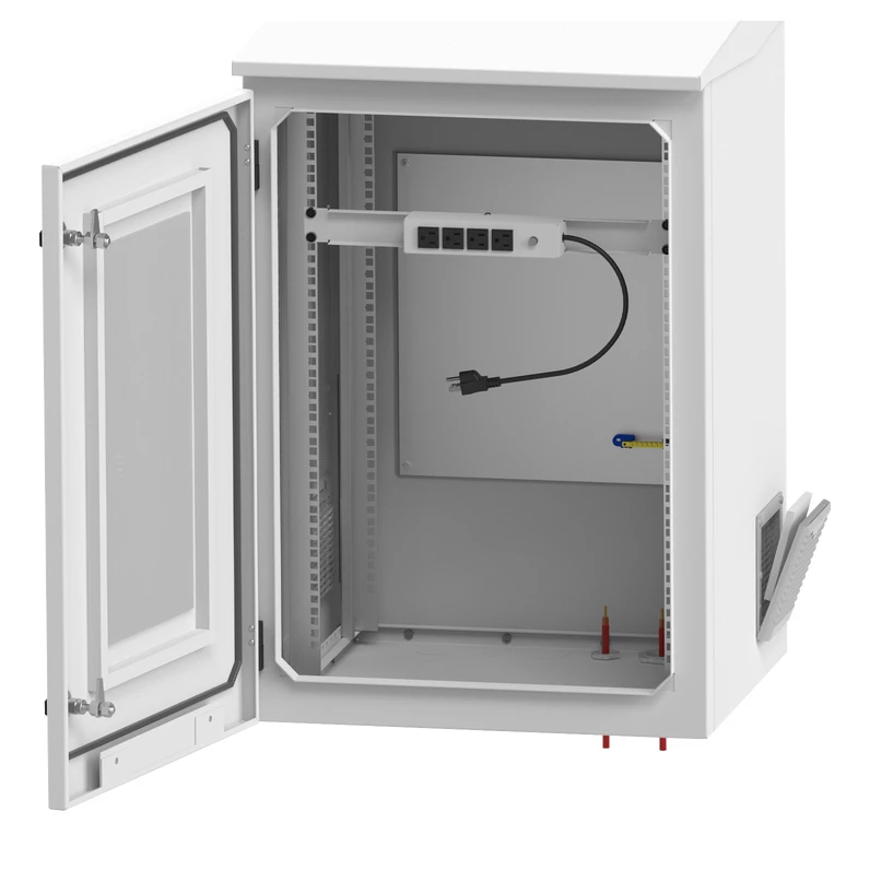 - Rack estándar de 19" con 16 unidades (2 postes al frente y 2 traseros).