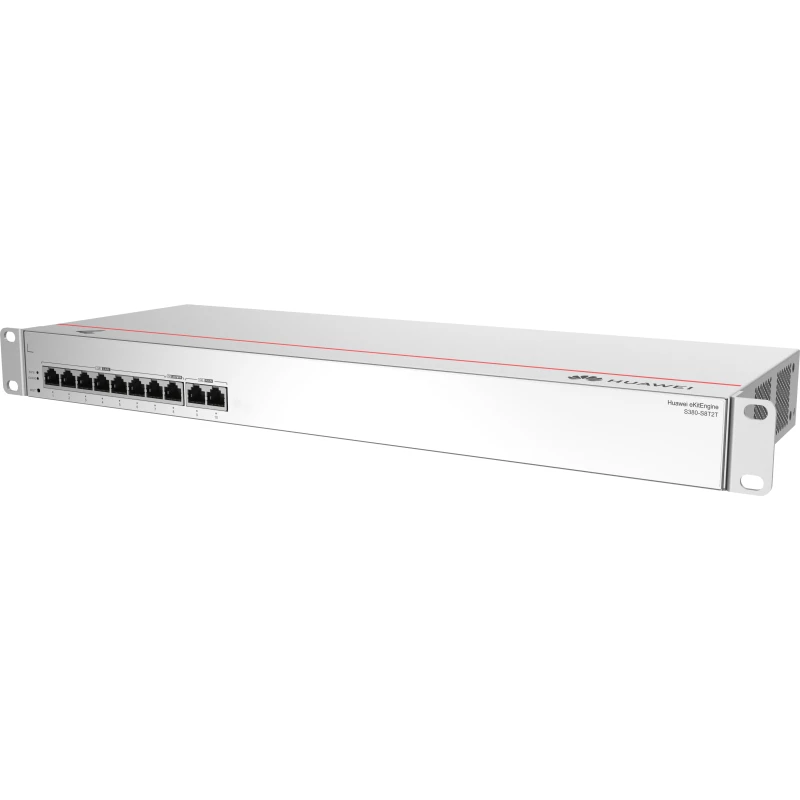HUAWEI eKit S380 Series S380-S8T2T. Tipo de interruptor: Gestionado. Puertos tipo básico de conmutación RJ-45 Ethernet: Gigabit Ethernet (10/100/1000), Cantidad de puertos básicos de conmutación RJ-45 Ethernet: 8. Tabla de direcciones MAC: 2000 entradas, Capacidad de conmutación: 16 Gbit/s. Montaje en rack, Factor de forma: 1U