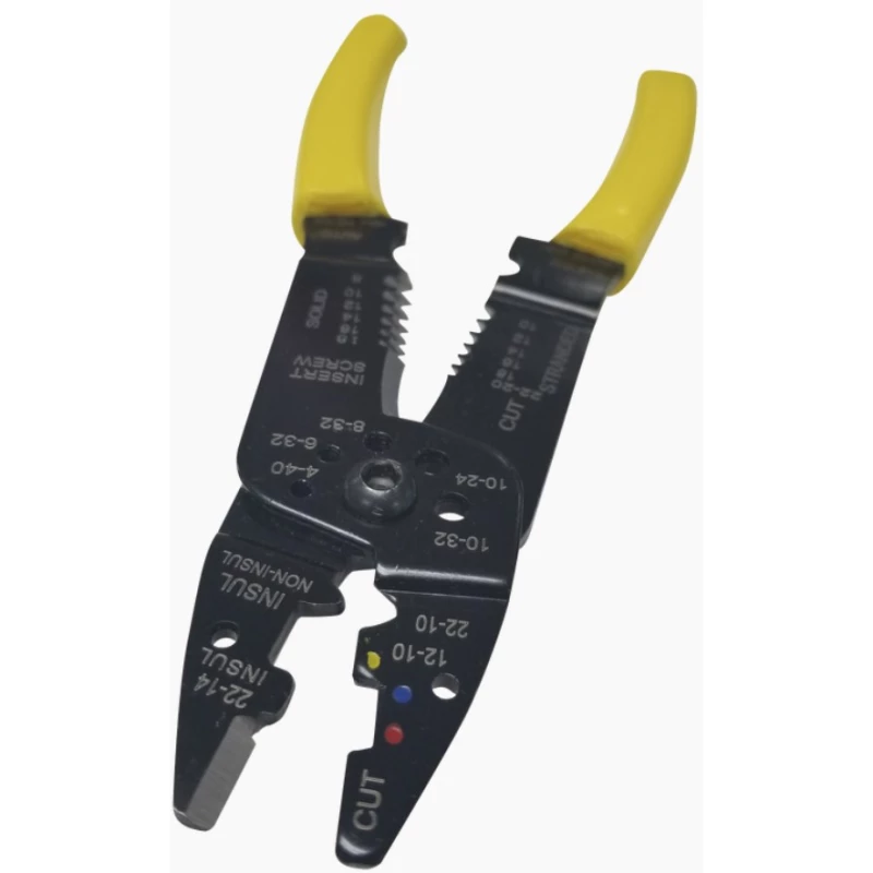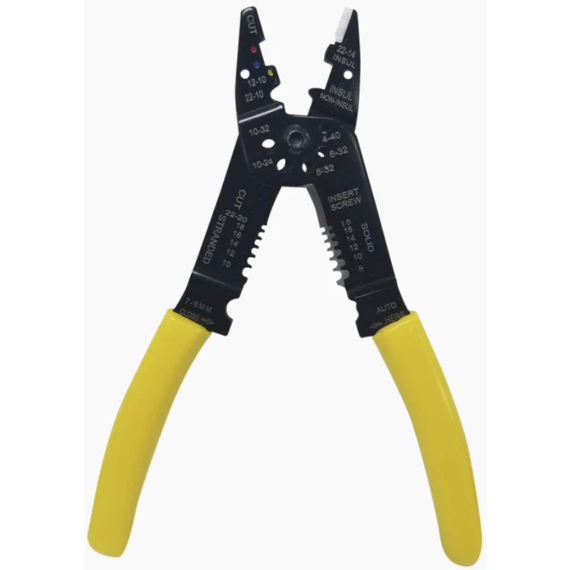 Epcom EP204B. Capacidad de pelado de cables (max): 3 mm, Capacidad de pelado de cables (min): 0.64 mm, Material de agarradera: Acero al carbón. Color del producto: Negro, Amarillo. Cantidad por paquete: 1 pieza(s)