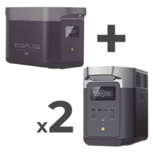 EcoFlow DELTA 2 Max. Tecnología de batería: Fosfato de hierro-litio (LiFePo4), Fuente de carga: Corriente alterna, Encendedor de puros, Solar, Capacidad de batería: 2048 Wh. Color del producto: Negro, Tipo de control: Botones. Cantidad de salidas AC: 4 salidas AC, Tipo de conector USB: USB tipo A, USB Tipo C. Ancho: 242 mm, Profundidad: 305 mm, Altura: 497 mm. Cables incluidos: Corriente alterna, Número de baterías incluidas: 2 pieza(s), Cantidad por paquete: 1 pieza(s)