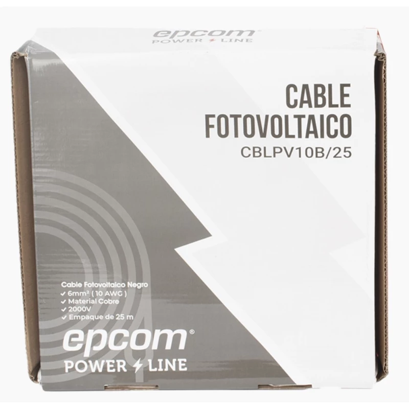 Epcom KIT2CBLPV10RB/25. Tipo de producto: Juego de cables, Material principal: Cobre, Color del producto: Negro, Rojo. Voltaje de entrada: 1000 - 2000 V. Longitud de cable: 25 m, Diámetro: 6 mm. Cantidad por paquete: 2 pieza(s)